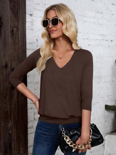Womens Tunic Tops 3/4 Sleeve Blouses Business Casual V neck Fall Shirt