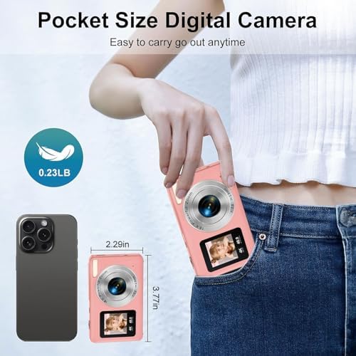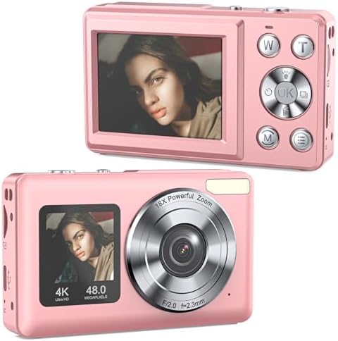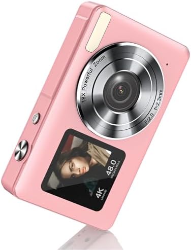 📷【Enjoy the World through Dual Screens】 The **2.4-inch + 1.3-inch IPS screens** of our compact camera ensure vibrant viewing, making it super easy to snap selfies and perfect shots, Don’t worry about the wrong selfie posture anymore! Even when you’re trying to impress your friends with your vlogging skills.