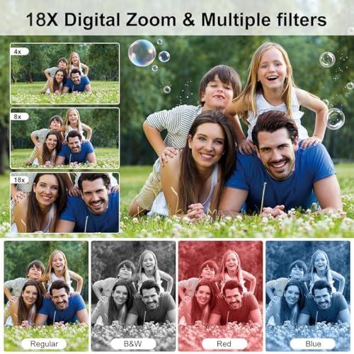 📷【Creative Made Easy 】Conducted with ergonomic design, from easy to access buttons to simple functions menu, user-friendly interfaces down to the large LCD display.This children digital cameras is packed with fun tools like filters, 18x digital zoom, burst mode, and time-lapse photography.