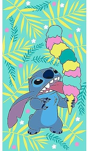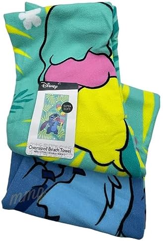 Bring the whimsical charm of Disney’s beloved character Stitch to your beach adventures with this delightful beach towel. Set against a refreshing turquoise background adorned with tropical palm fronds and delicate flowers, this towel features an adorable illustration of Stitch indulging in a towering ice cream cone. The playful design captures Stitch’s mischievous personality as he eagerly eyes his colorful treat, making it perfect for Disney fans of all ages. The vibrant color palette includes cheerful yellows, pinks, and teals that perfectly complement the summer season. This beach towel is ideal for lounging by the pool, relaxing on sandy shores, or adding a touch of Hawaiian-inspired fun to your beach gear collection. The eye-catching pattern combines tropical elements with character art to create a unique accessory that stands out from standard beach towels.