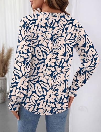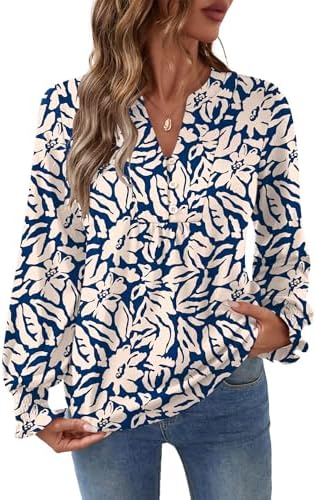 Women’s Blouses V Neck Long Sleeve Shirts Tunics to Wear With Leggings Shirts V Neck Button Up Shirt Womens Long Sleeve Tshirts Fall Shirts for Women Smocked Sleeve Tops V Neck Long Sleeve Tops