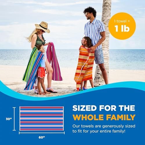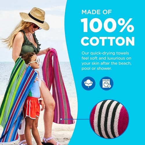 Soft and Absorbent: Crafted from 100% cotton, the towels offer superior softness and absorbency to soak up water quickly after swimming or sunbathing.