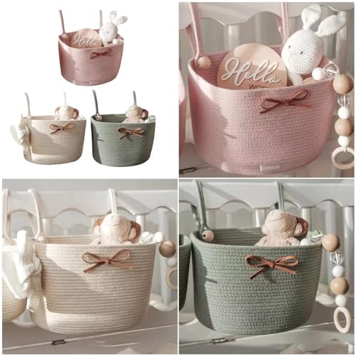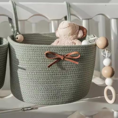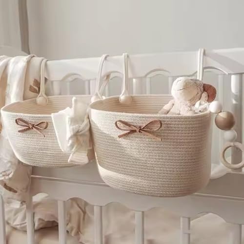 Orderly storage: This cotton cord hanging crib hanging basket with large storage space, which can easily store and organize all the baby necessities such as diapers, wet face cream and clothes