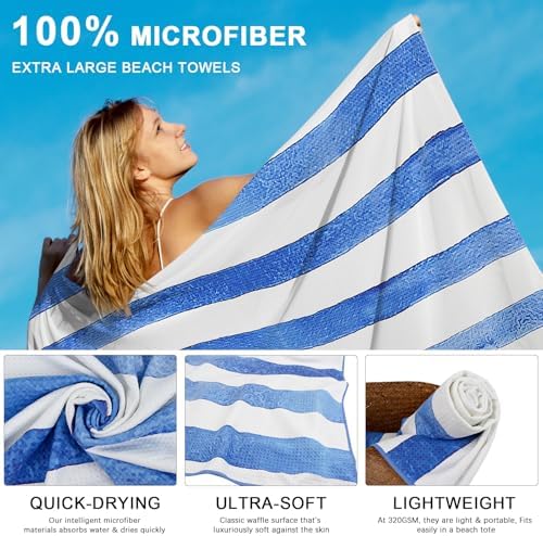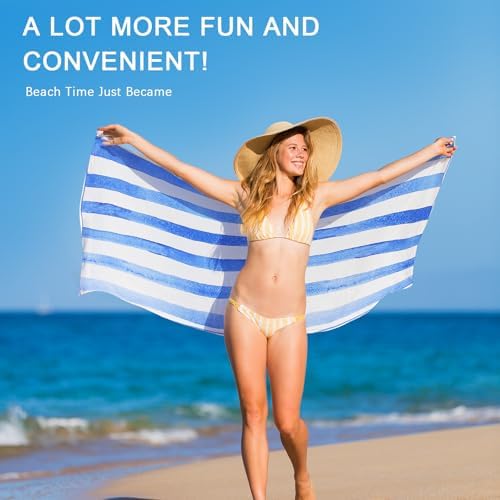 Extra Large Beach Vacation Essentials: Our beach towel is oversized,It offers you enough space to stretch out and relax on the beach. There are three size to choose,regular size 30″*67″,34″*60″, the large size( 60″*67″) is especially suitable for family use.Our beach towel can even double as a blanket or yoga towel . It is also suitable for use in bathrooms, swimming pools, gyms, camping ,picnic and travel other places. It is a perfect beach themed gift for friends, lovers and family members.