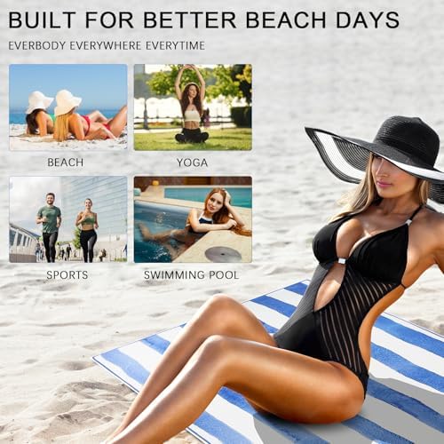 Quick Dry and High Absorbency: Our microfiber beach towels are crafted from a blend of 80% polyester and 20% polyamide. which makes the beach towel feel extremely soft, smooth like baby skin, also environmentally friendly.The towels will quickly absorb the moisture and dampness on your body, keeping you dry and ready for use at any time.