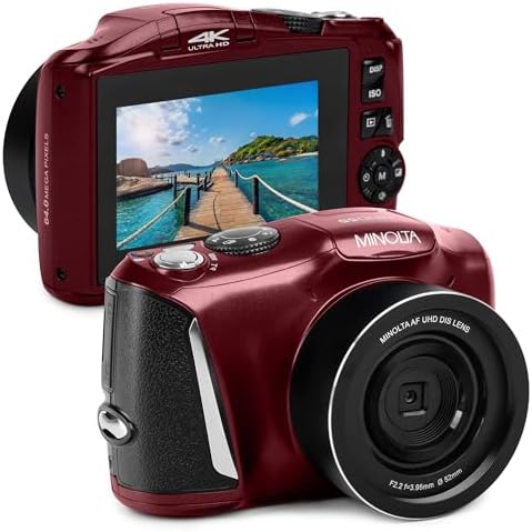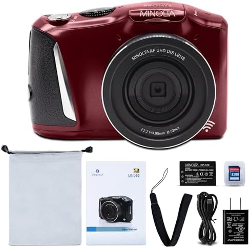 Meet the Minolta MND55—your next creative companion for photography and videography on the go. This advanced yet compact camera is designed for adventurers, content creators, and everyday users looking to elevate their visual storytelling. At the heart of the MND55 is a high-performance CMOS sensor capable of delivering 64-megapixel stills with vibrant colors and extraordinary detail. Whether you’re capturing portraits, landscapes, or action scenes, this camera brings sharpness and clarity to every frame. Video creators will love the ability to record in 4K Ultra HD at 60 frames per second, producing smooth, high-resolution footage that’s perfect for social media, cinematic projects, or personal archives. The result? Professional-looking content without the learning curve of high-end gear. The MND55 also makes connecting and sharing effortless thanks to built-in WiFi and compatibility with a dedicated smartphone app. Wirelessly transfer your photos and videos, control your camera remotely, or instantly preview your media—all from your phone. A 16x digital zoom lets you get close to subjects without physically moving, while the large 3.0-inch LCD screen provides a clear view for framing shots, browsing media, or adjusting settings in real time. Automatic exposure and digital image stabilization help ensure your shots are consistently well-balanced and blur-free. Additional creative modes like Time Lapse and Slow Motion give you more ways to tell your story, adding versatility and style to your photo and video sessions. With a rechargeable battery and included 32GB memory card, the MND55 is ready for extended use wherever life takes you. Compact, user-friendly, and packed with powerful features, the MND55 redefines what a portable camera can do. Bring your vision to life with clarity, creativity, and connection—all in the palm of your hand.
