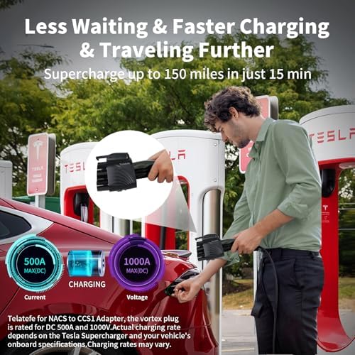 【Easy to Use】– Telatefe 2025 NACS to CCS Adapter is designed to be simple and easy to connect and detach, just need to attach the adapter to the vehicle’s charging port and plug it into the Tesla Supercharger to begin charging. Less Waiting & Faster Charging & Traveling Further. Supercharge up to 150 miles in just 15 min.