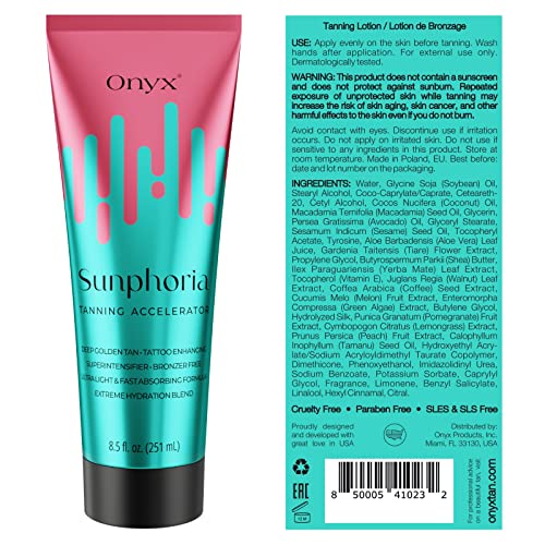 NOURISH AND REVITALIZE YOUR SKIN: Onyx Sunphoria is infused with nourishing fruit extracts that work their magic on your skin. Your complexion will benefit from improved tone and texture, providing a youthful, natural glow. Plus, our tan accelerator helps reduce the appearance of wrinkles.