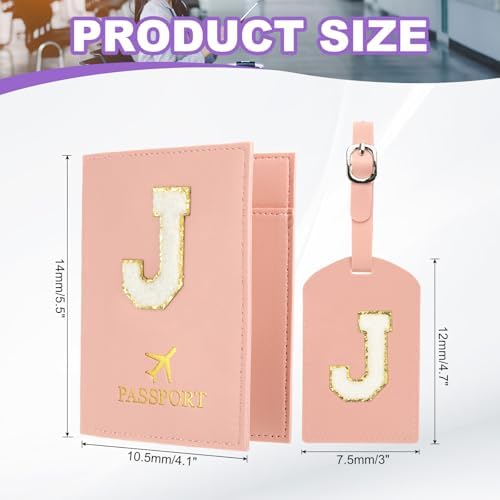 Color: Pink J; Material: PU; Passport Holder Size: 10.5 x 1 x 14cm / 4.1 x 0.4 x 5.5inch(L x W x H); Luggage Tag Size: 7.5 x 12cm / 3 x 4.7inch(L x H); Packing List: 1 Pcs x Passport Holder, 1 Pcs x Luggage Tag