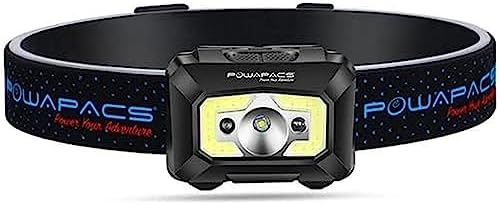 Powapacs Ultralite Rechargeable Head Torch is lightweight, easy to carry, and has an adjustable strap and high brightness XPE LED lights for running, hiking, camping, reading, fishing. This rechargeable sensor headlamp can be turned on/off by waving your hand under the motion sensor mode. USB cable included for direct charging. The built-in rechargeable battery provides over 2.5 hours of high brightness use per charge (450 lumens white light mode). Suitable for running with a weight of less than 60g and an adjustable ergonomically designed elastic headband, resulting in a secure yet comfortable fit for long wearing sessions.