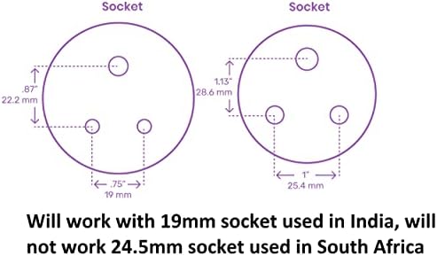 NOTE: This plug is compatible with 3 Pin 19mm pins commonly used in India but is not suitable for South Africa plugs, which use 25.4mm pins – refer to the product photos for clarification.