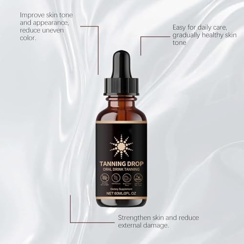 🏖️【HIGH EFFICIENCY】This tanning drops to drink could be absorbed through the digestive system. Even coloring, consistent color all over the body. Continuously exert the effect, regular use, and maintain the tanning state stably, allowing the skin to achieve an even tan without UV exposure.