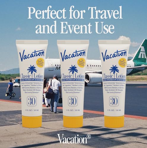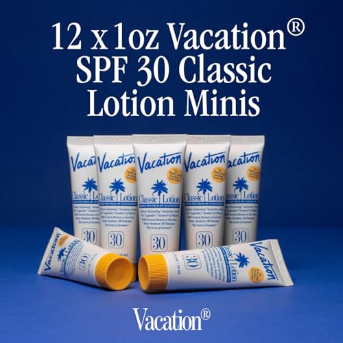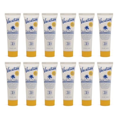 PACK OF 12 MINIS: The same sun protection of Vacation SPF 30 Classic Lotion now available in a 1oz travel size sun lotion. Complete with 12 deluxe mini samples, this water resistant (80 minutes) broad spectrum sunscreen is octinoxate free, PEG & paraben free, cruelty free, and vegan.