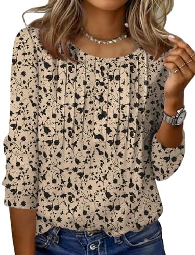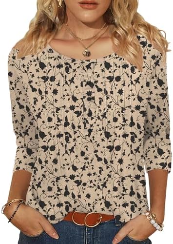 Shirts for Women 2025 Summer 3/4 Length Sleeve Womens Tops Dressy Casual Pleated